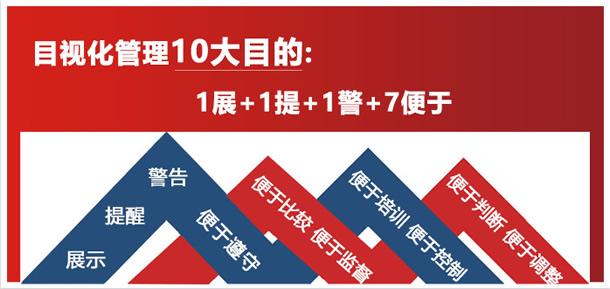 | 整洁、规范、安全、有序的生产环境。标示管理界限,标明正常与异常的定量管理连界限,使之一目了然。 |
